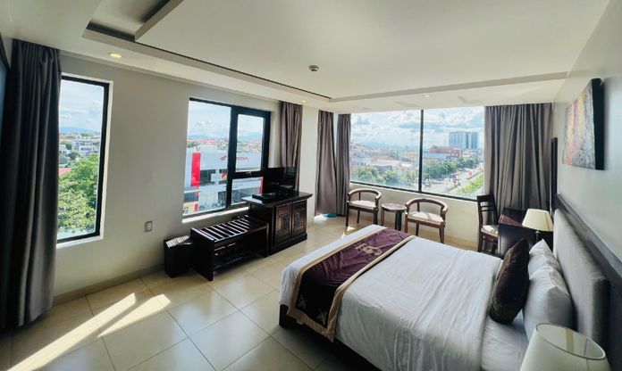Great care is taken to ensure guests experience comfort through top-notch services and amenities. Stay connected with your associates, as complimentary Wi-Fi is available during your entire visit. To facilitate your arrival and departure, you can pre-book airport transfer services prior to checking in.The hotel offers taxi, car hire and shuttle amenities for your ease in navigating around Dong Ha (Quang Tri). When arriving by car, you'll be grateful for the on-site complimentary parking at hotel. The hotel offers reception amenities including concierge service, express check-in or check-out and luggage storage to ensure a comfortable stay for guests. Should you require assistance, the ticket service and tours can also aid in booking tickets and securing reservations at the finest shows and events in the vicinity.Whether it's an extended stay or simply needing fresh attire, laundromat, dry cleaning service and laundry service provided by hotel ensures your cherished travel garments stay spotless and accessible.Your stay will be comfortable with the presence of 24-hour room service, room service and daily housekeeping as an in-room amenity for your relaxation and enjoyment.Smoking is permitted solely in the specified smoking zones allocated by hotel. In order to ensure the utmost level of relaxation, the guestrooms feature an inviting design and are equipped with all basic necessities, creating a delightful stay experience.To ensure a pleasant stay, a selection of rooms at hotel come furnished with linen service, blackout curtains and air conditioning, all designed with your ease in mind. Several chosen accommodations at Golden Hotel have a separate living room incorporated into the room design.In select rooms, visitors can enjoy a touch of amusement with the availability of daily newspaper, television and in-room video streaming for their entertainment needs. Within specific rooms, a refrigerator, bottled water, instant coffee and mini bar is conveniently available for your use.Understanding the significance of bathroom facilities in enhancing visitor contentment, hotel offers a hair dryer and toiletries within a few chosen chambers. How about kicking off each day of your getaway with a delicious cup of coffee? At the hotel, relish in the invigorating taste of a freshly brewed, excellent coffee.Various excellent meal offerings at hotel ensure that enticing and easily accessible options are constantly available.Upon arrival, make sure to explore bar and nightclub to experience enjoyable evening entertainment within the premises. Visitors staying at Golden Hotel have the option to receive groceries in their room for meal preparation, courtesy of the unique service provided by the hotel. Visitors wishing to create their personal culinary delights will appreciate the on-site shared kitchen provided at this establishment. Throughout the day, engage in the entertaining activities available at Golden Hotel.Unwind and conclude each day delightfully by stopping by massage, hot tub, salon, spa and sauna, ensuring a soothing experience.undefined