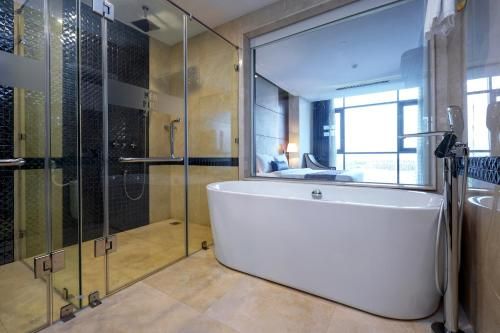 At Becamex Hotel New City, exceptional service and top-notch amenities create a memorable experience for guests. Complimentary internet access is available in the hotel to ensure you stay connected during your visit. Arrange your trips to and from the airport using the hotel's convenient transportation services booking. Discover the wonders of Bình Dương with ease by utilizing the services provided by taxi and shuttle.Complimentary parking is available for guests. Continuously receive the support you require through front desk amenities such as concierge service, express check-in or check-out, luggage storage and safety deposit boxes.Always look your best in your preferred attire with the dry cleaning service and laundry service provided at Becamex Hotel New City. Craving relaxation? In-room amenities such as 24-hour room service and room service allow you to maximize your time spent inside the room.Additionally, you can obtain minor travel essentials and miscellaneous items at the convenience stores without departing from the Becamex Hotel New City. For the health and well-being of all guests and staff, smoking is restricted exclusively to assigned zones.Accommodations come equipped with all the conveniences required for a restful night's slumber. A selection of rooms feature linen service, blackout curtains and air conditioning to ensure your comfort and convenience. A few accommodations in Becamex Hotel New City incorporate separate living room and balcony or terrace into their architectural arrangement.A few chosen rooms are equipped with television and cable TV to ensure guest amusement. In certain rooms, the hotel offers visitors access to a refrigerator, bottled water, instant coffee, instant tea and mini bar.Becamex Hotel New City offers a hair dryer, toiletries and bathrobes in the restrooms of specific accommodations. At Becamex Hotel New City, each day commences with a scrumptious breakfast offered at no additional cost. All adore a delightful cup of coffee! An on-site coffee shop ensures you can relish a cup of authentic, freshly-brewed coffee every morning -- or whenever you desire it. Allow your journey to be free from the pangs of hunger! On-site eateries offer delicious and accessible meal choices. At Becamex Hotel New City, guests can take pleasure in the delightful recreational amenities provided for their entertainment. At Becamex Hotel New City, a wide array of amenities guarantees a fulfilling experience throughout your visit. Make your holiday truly memorable by taking a rejuvenating plunge into the pool.At the hotel fitness center, you have the option to engage in your daily exercise routine or simply alleviate your jet lag by breaking a sweat.undefined