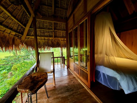 - Bữa sáng tự chọn được phục vụ hàng ngày tại nhà nghỉ bằng gỗ.