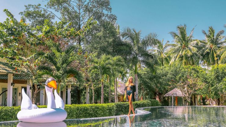 Green Villa zone is located in the opposite side of Beach zone. If guests who go to the Green Villa zone should pass through the street or take a tram that is available upon request from 07:00 AM to 09:30 PM.