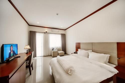Experience an abundance of unparalleled facilities and features at Ban Thach Riverside Hotel & Resort. Share your photos and respond to emails at your convenience, thanks to the free Wi-Fi internet access offered by hotel.Taxi and shuttle offerings at the hotel simplify arranging your excursions, explorations, and additional activities in Tam Ky (Quang Nam).Visitors can take advantage of complimentary parking directly at the hotel.Reception services such as concierge service, express check-in or check-out, luggage storage and safety deposit boxes are available to accommodate your requirements.Traveling with minimal baggage is achievable at Ban Thach Riverside Hotel & Resort, as the hotel's laundromat, dry cleaning service and laundry service ensures your garments stay fresh. Room amenities like 24-hour room service, room service and daily housekeeping contribute to making a perfect selection for your stay.The hotel maintains a completely smoke-free zone, providing a breathable atmosphere. Smoking is limited to specified smoking zones. Each accommodation at Ban Thach Riverside Hotel & Resort is thoughtfully created and adorned to provide visitors with a comfortable, home-like atmosphere.In certain rooms, the hotel offers linen service, blackout curtains and air conditioning for guest convenience and satisfaction. At Ban Thach Riverside Hotel & Resort, uniquely crafted rooms provide various layout choices, featuring spaces equipped with separate living room and balcony or terrace.In select rooms, guests at the hotel can enjoy top-notch in-room entertainment with television, in-room video streaming and cable TV available for their convenience. Rest assured, in a few chosen rooms, you will find the convenience of a refrigerator, a coffee or tea maker, bottled water, instant coffee, instant tea and mini bar at your disposal.Maintain your cleanliness and comfort using a hair dryer, toiletries and bathrobes available in select guest restrooms. Immerse yourself in the executive lounge, where exceptional amenities and lavish surroundings await you. Begin your holiday on a high note. At Ban Thach Riverside Hotel & Resort, your mornings are greeted with a delightful, free breakfast. Experience the delight of a fresh morning by savoring excellent coffee at the cafe situated within hotel.Should you prefer not to venture out for a meal, the enticing culinary choices at hotel are always available for your satisfaction.Experience an unforgettable evening with your fellow travelers just a short distance away, at hotel's bar. Should you be particularly discerning in your dining choices, you will surely appreciate having access to the on-site BBQ facilities provided at this location.Indulge in the numerous pursuits available at Ban Thach Riverside Hotel & Resort.Unwind after a long day by stopping by massage and spa to rejuvenate your senses.Each day at hotel, immerse yourself in the invigorating waters of the pool, perfect for a rejuvenating plunge or a series of revitalizing laps. Bypass the formal attire and choose a laid-back mixed drink or brew at hotel's waterside lounge.For individuals who don't want to skip their exercise routine, visiting the hotel fitness center ensures you maintain your vitality and wellness.undefined