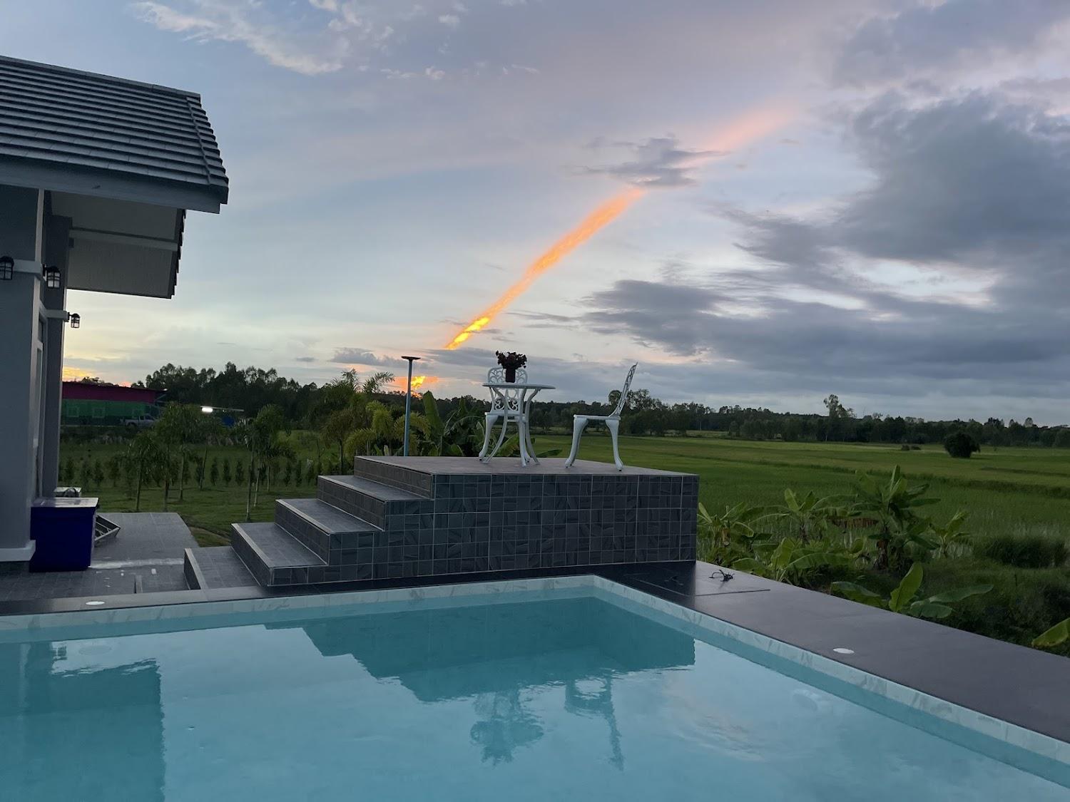 1. Luxurious swimming pool surrounded by lush gardens