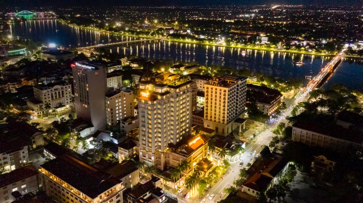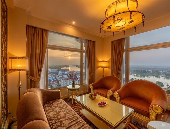Khách sạn là một kiệt tác kiến trúc độc đáo, nơi giao thoa giữa nền kiến trúc Cung đình Huế với những hình khối, đường nét hoa văn màu sắc và các loại vật liệu cổ được phục chế và những không gian mới mẻ sang trọng mang lại cảm giác thoải mái mà không kém phần trang trọng.