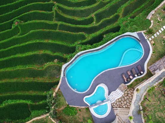 Bể bơi vô cực ngoài trời, view thung lũng mường hoa